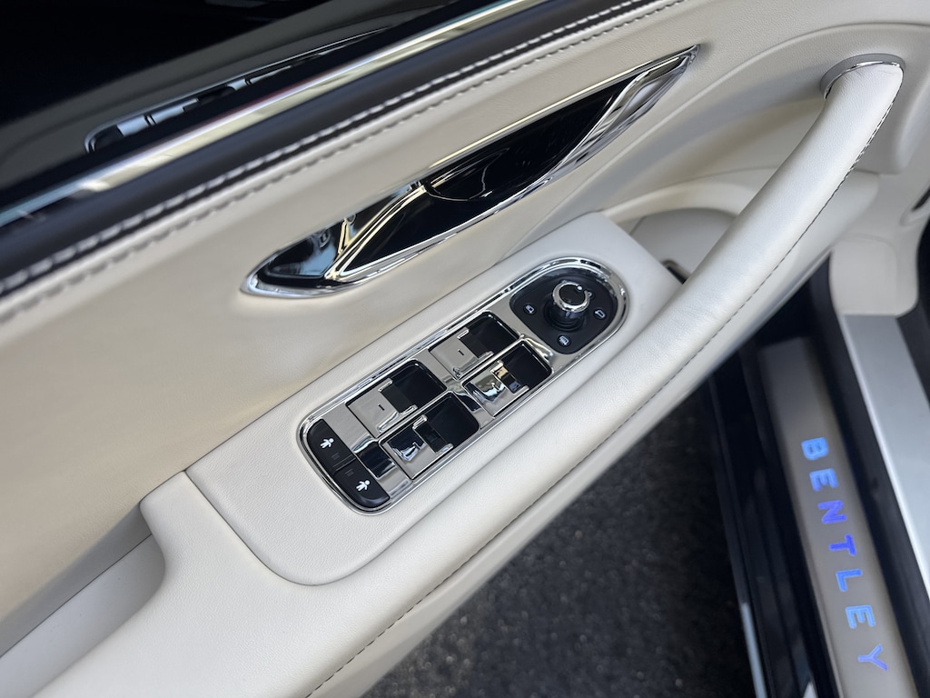 Inside, craftsmanship shines with contrast stitching and seat piping, embroidered Bentley emblems, deep pile overmats with contrast binding, and a heated duo-tone steering wheel. A panoramic sunroof with blinds and illuminated mirrors floods the cabin with light, while Piano Black veneers add a modern, elegant finish.