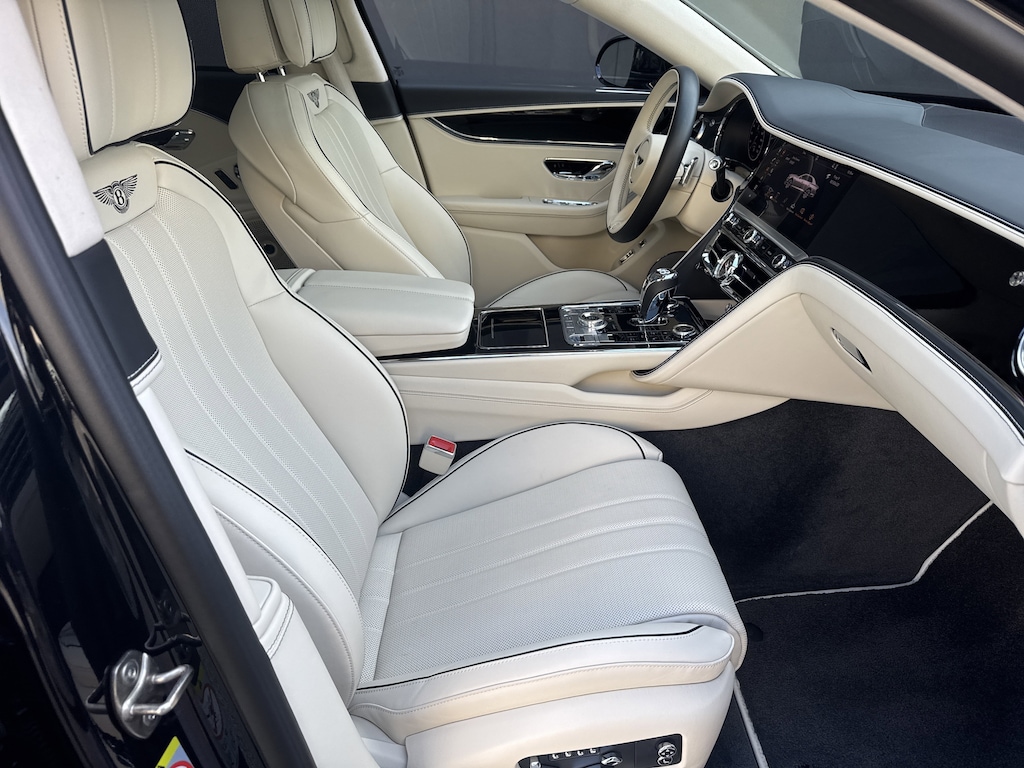 From the outside, this Flying Spur commands attention with 21 Ten Twin-Spoke painted wheels, LED welcome lamps, and the iconic illuminated Flying B hood mascot a true symbol of prestige.