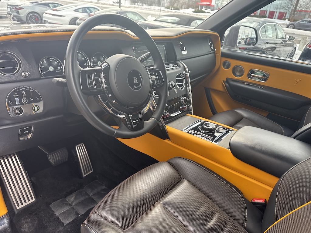 Finished in Tempest Grey with striking Forge Yellow accents, this Cullinan makes an unforgettable statement. Under the hood lies the legendary 6.75L twin-turbo V12, seamlessly paired with Rolls-Royce All-Wheel Drive and Rear-Wheel Steering, delivering effortless performance with unrivaled serenity. Every drive feels weightless, silent, and commanding.