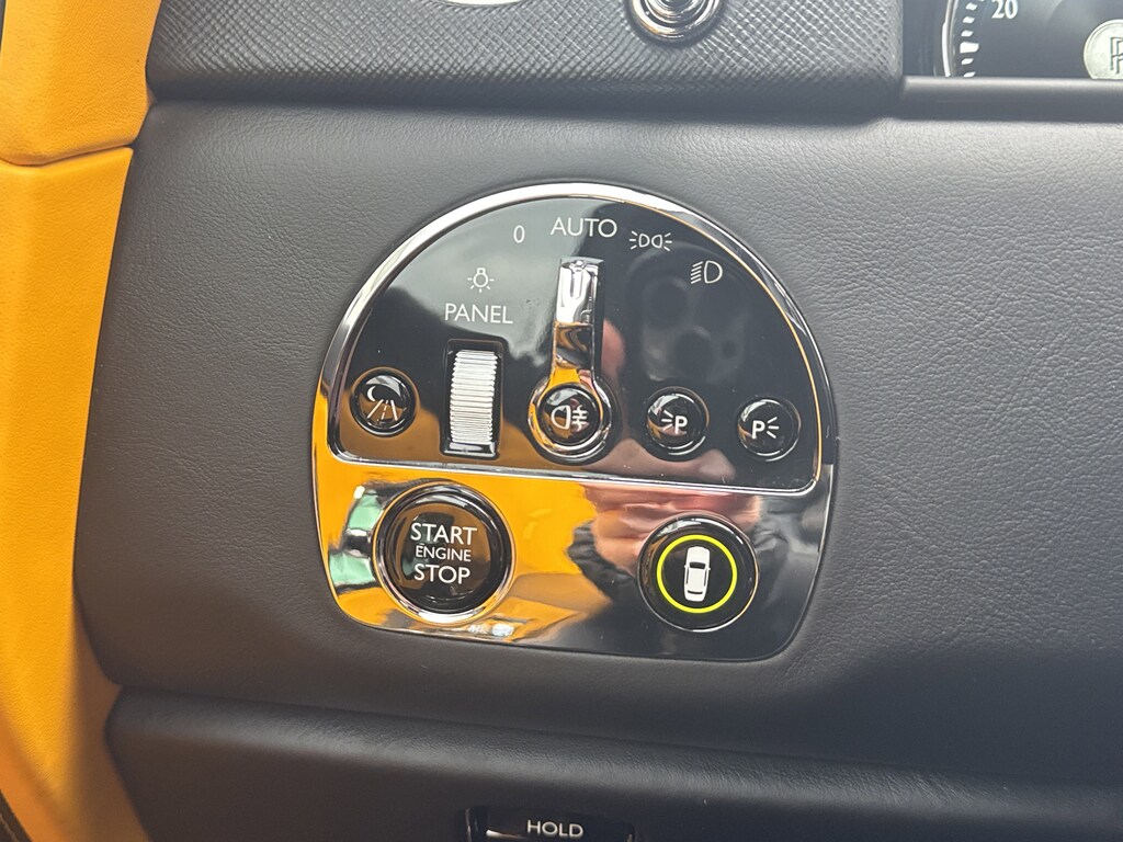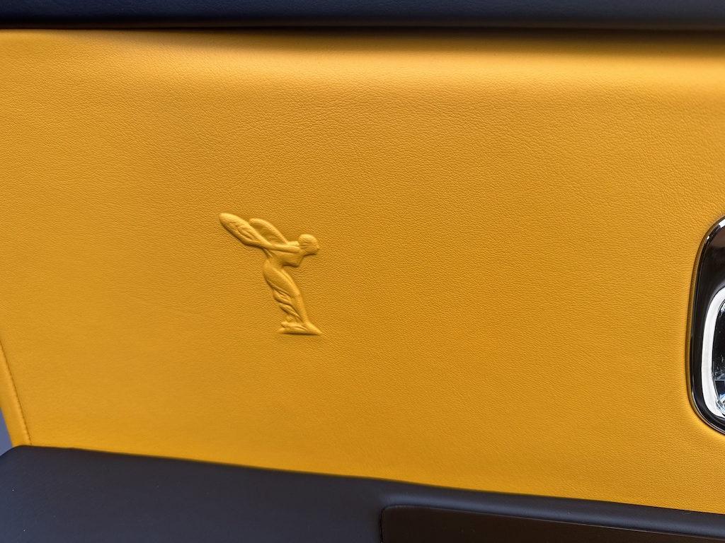 Exterior highlights include 22 part-polished wheels with self-righting centers, Forge Yellow brake calipers, laser headlights, and the signature Spirit of Ecstasy, power-retracting in silent elegance.