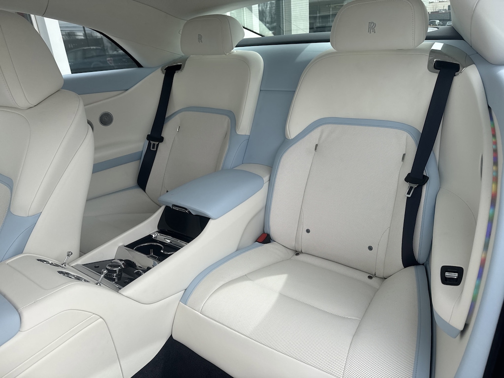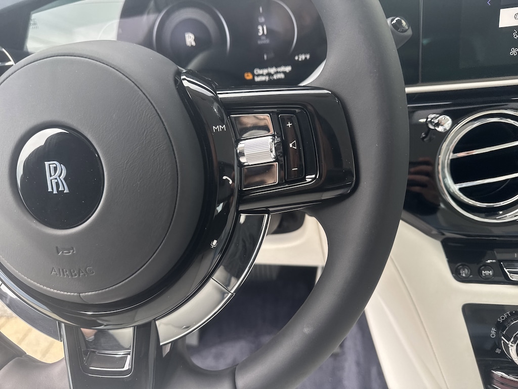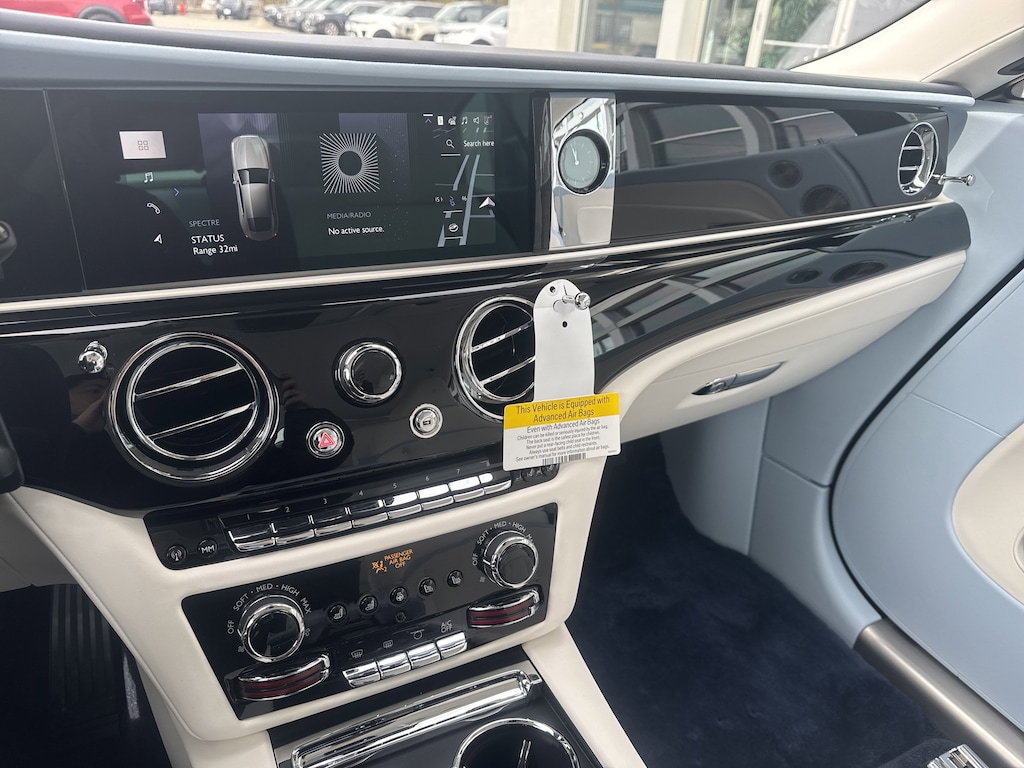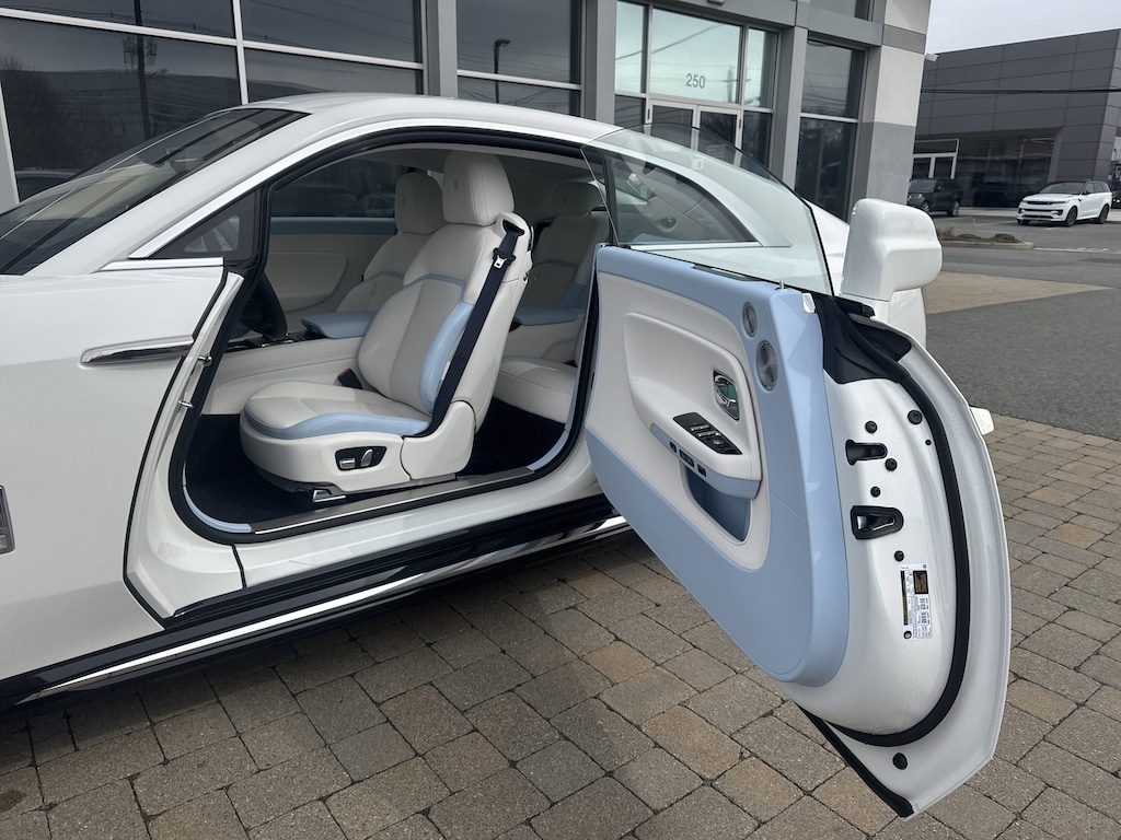 This vehicle includes: LAMBSWOOL FOOTMATS, SPECTRE ENHANCEMENT PACKAGE -inc: Shooting Star Headliner High Gloss Veneer - Piano Black Bespoke Interior - Module Editing Commissioned Collection Signature Key Commissioned Collection Color-Keyed Boot Trim Commissioned Collection Tertiary Interior Color Illuminated Treadplate - Spectre Rolls-Royce Bespoke Audio Lambswool Footmats RR Monogram to all Headrests Commissioned Collection Wheels: 23 Wing Spoke Part Polished Tires: 295/35R23 XL Illuminated Grille Ventilated Massage Seats Heated Passenger Surround, VENTILATED MASSAGE SEATS, Electric Motor, All Wheel Drive, Air Suspension, Active Suspension, Power Steering, Air Suspension, Air Suspension, ABS, 4-Wheel Disc Brakes, Brake Assist, Lithium Ion Traction Battery, Aluminum Wheels, Tires - Front Performance, Tires - Rear Performance, Heated Mirrors, Power Mirror(s), Power Folding Mirrors, Rear Defrost, Intermittent Wipers, Variable Speed Intermittent Wipers, Rain Sensing Wipers, Remote Trunk Release, Power Liftgate, Daytime Running Lights, Automatic Headlights, Headlights-Auto-Leveling, LED Headlights, AM/FM Stereo, CD Player, Navigation System, Satellite Radio, MP3 Capability, Bluetooth Connection, Auxiliary Audio Input, HD Radio, WiFi Hotspot, Smart Device Integration, Requires Subscription, MP3 Capability, Steering Wheel Audio Controls, Auxiliary Audio Input, Hard Disk Drive Media Storage, Bluetooth Connection, Power Driver Seat, Power Passenger Seat, Bucket Seats, Heated Front Seat(s), Seat Memory, Bucket Seats, Rear Bucket Seats, Heated Rear Seat(s), Adjustable Steering Wheel, Trip Computer, Power Windows, WiFi Hotspot, Leather Steering Wheel, Keyless Entry, Power Door Locks, Keyless Start, Keyless Entry, Power Door Locks, Remote Trunk Release, Universal Garage Door Opener, Cruise Control, Adaptive Cruise Control, Multi-Zone A/C, A/C, A/C, Rear A/C, Woodgrain Interior Trim, Leather Seats, Auto-Dimming Rearview Mirror, Driver Vanity Mirror, Passenger Vanity Mirror, Driver Illuminated Vanity Mirror, Passenger Illuminated Visor Mirror, Floor Mats, Seat Memory, Keyless Start, Navigation System, Smart Device Integration, Power Windows, Power Door Locks, Trip Computer, Security System, Immobilizer, Traction Control, Stability Control, Traction Control, Front Side Air Bag, Telematics, Requires Subscription, Rear Parking Aid, Blind Spot Monitor, Cross-Traffic Alert, Lane Departure Warning, Lane Keeping Assist, Lane Departure Warning, Aerial View Display System, Front Collision Warning, Tire Pressure Monitor, Driver Air Bag, Passenger Air Bag, Front Head Air Bag, Rear Head Air Bag, Passenger Air Bag Sensor, Knee Air Bag, Back-Up Camera
